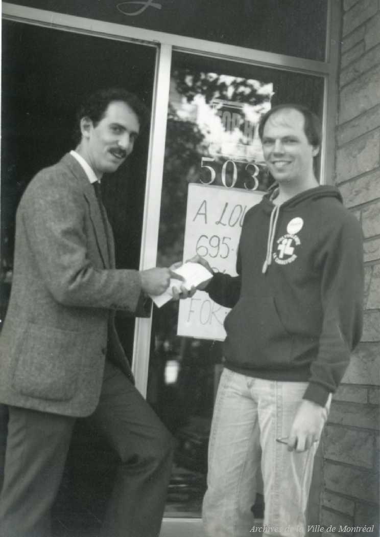 Marvin Rotrand en campagne électoral, lors d’une tournée de porte à porte. – 1986. P178-04-D007-001. Archives de la Ville de Montréal